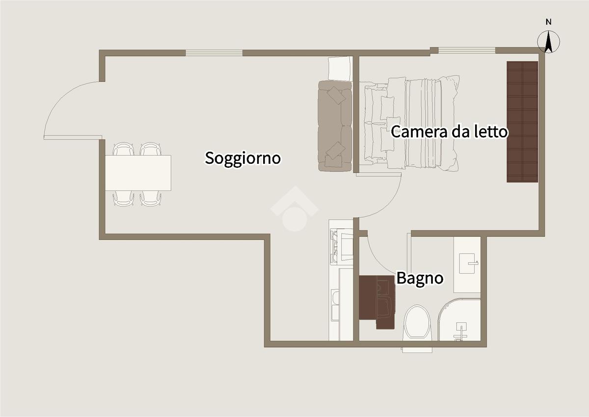 L’immobile, in ottimo stato manutentivo, si distingue per una distribuzione degli spazi funzionale e ben studiata: la zona giorno ospita un soggiorno con cucinotto separato, dalle dimensioni contenute ma organizzato in modo pratico ed efficiente. La zona notte è composta da una camera matrimoniale, mentre il bagno è dotato di lavasciuga.