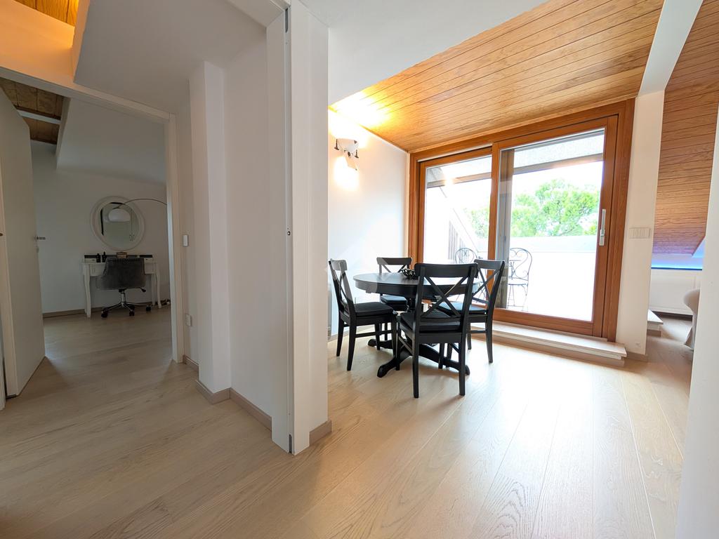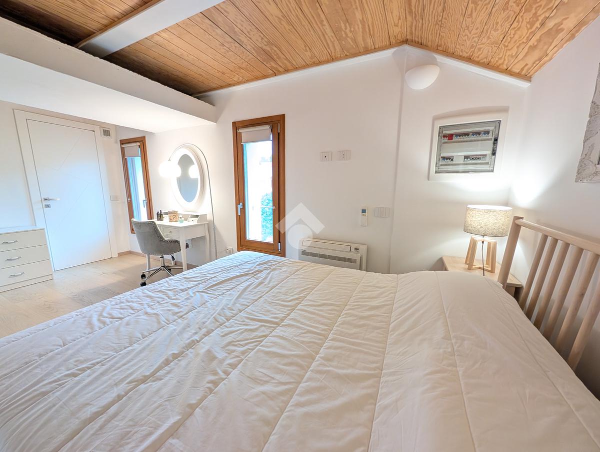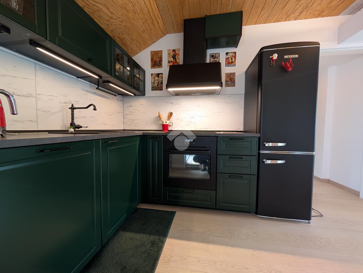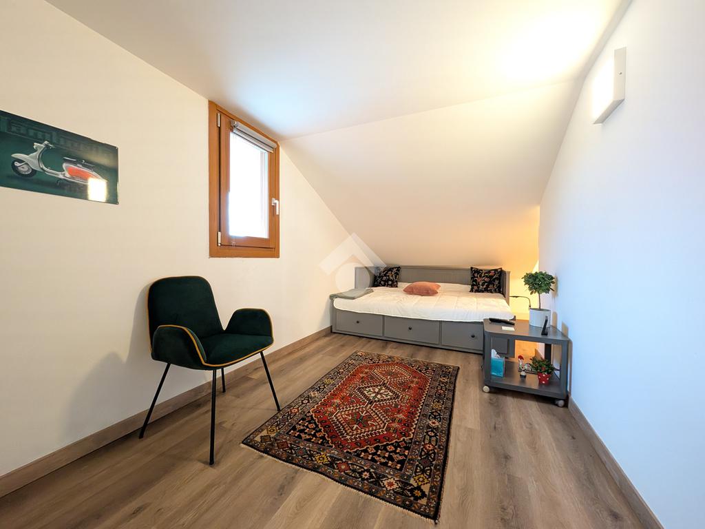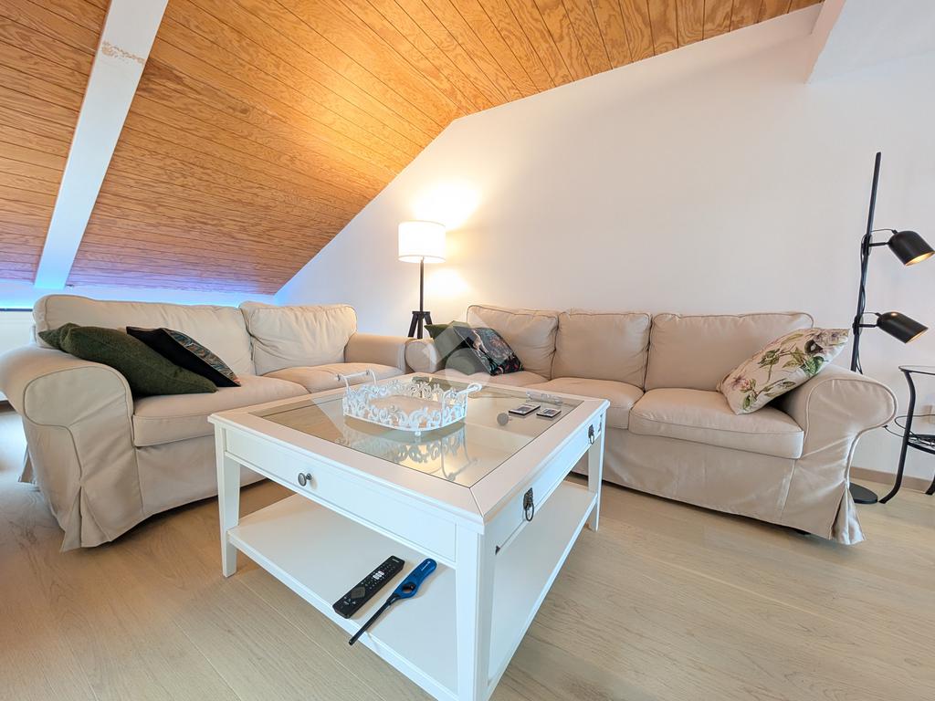 Situato al primo piano di un contesto ordinato e ben mantenuto, l'appartamento si sviluppa su un unico livello mansardato, recentemente ristrutturato con attenzione ai dettagli. L'ingresso conduce a un’ampia e luminosa zona giorno, composta da soggiorno con angolo TV, cucina a vista e uno spazio dedicato allo studio, completo di scrivania e libreria, ideale per il lavoro da remoto. L’ambiente è ulteriormente valorizzato da due terrazzi a tasca, entrambi abitabili e con gradevoli scorci di vista lago. Su uno dei terrazzi è stato realizzato un comodo ripostiglio adibito a lavanderia.
