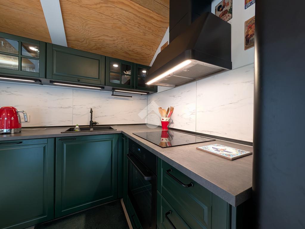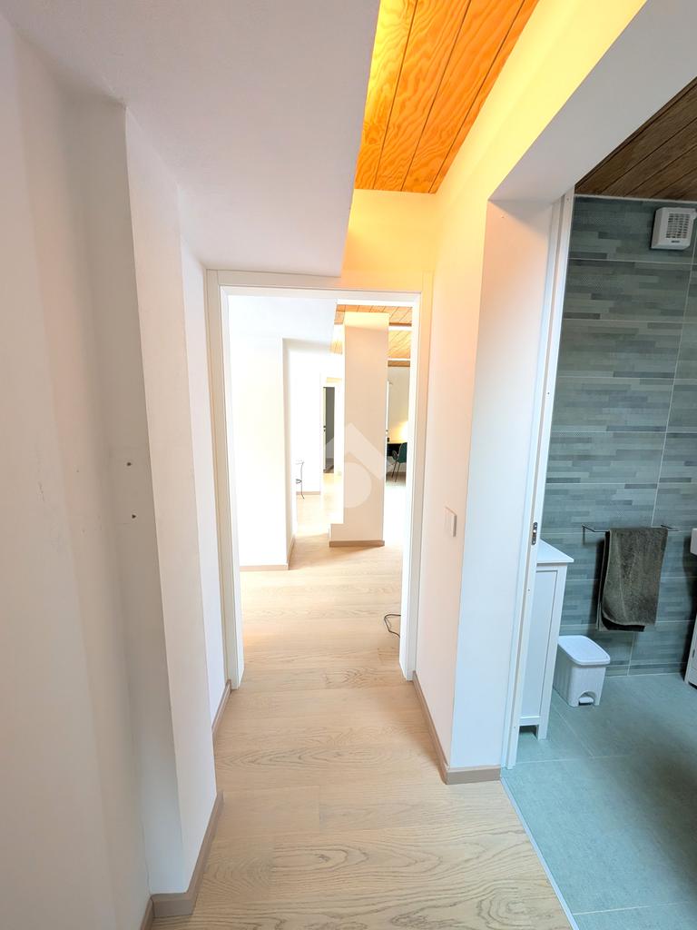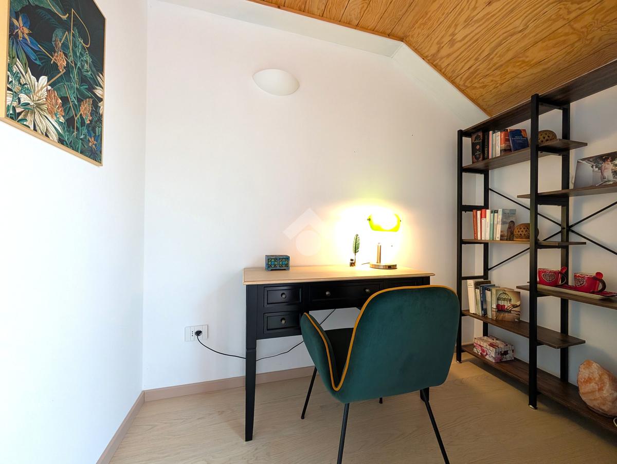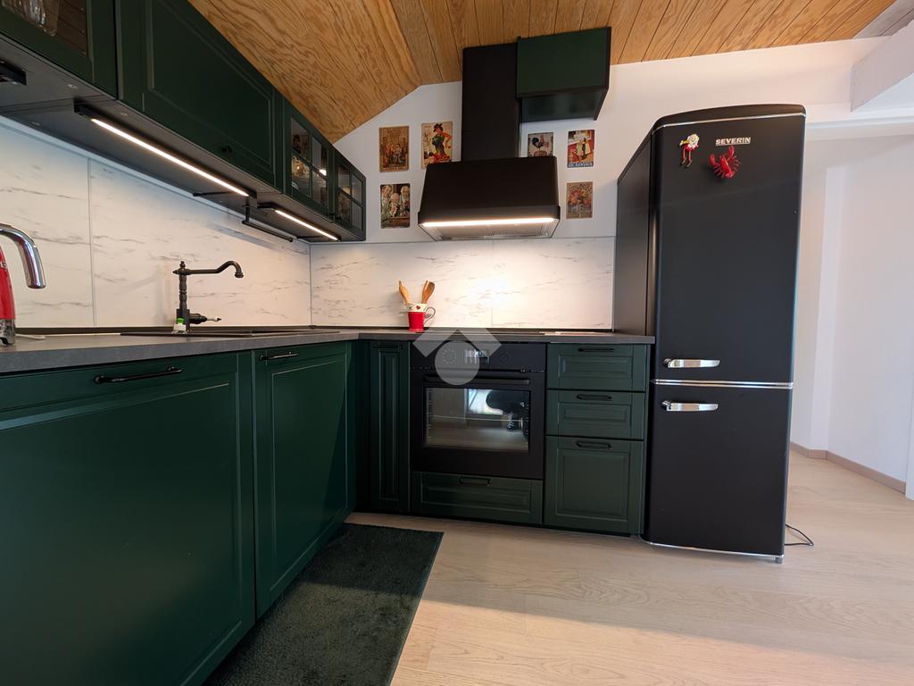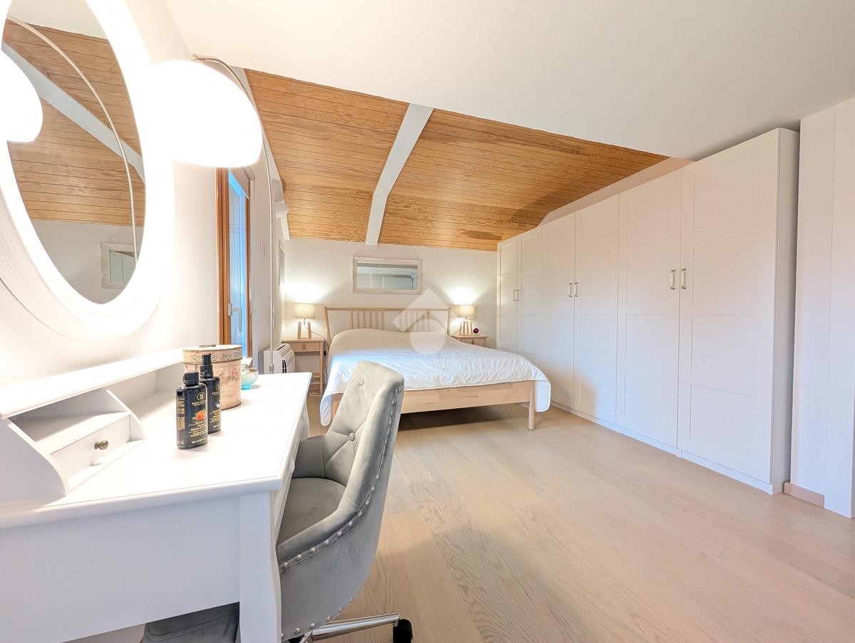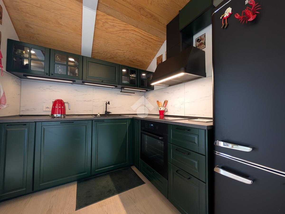 Situato al primo piano di un contesto ordinato e ben mantenuto, l'appartamento si sviluppa su un unico livello mansardato, recentemente ristrutturato con attenzione ai dettagli. L'ingresso conduce a un’ampia e luminosa zona giorno, composta da soggiorno con angolo TV, cucina a vista e uno spazio dedicato allo studio, completo di scrivania e libreria, ideale per il lavoro da remoto. L’ambiente è ulteriormente valorizzato da due terrazzi a tasca, entrambi abitabili e con gradevoli scorci di vista lago. Su uno dei terrazzi è stato realizzato un comodo ripostiglio adibito a lavanderia.