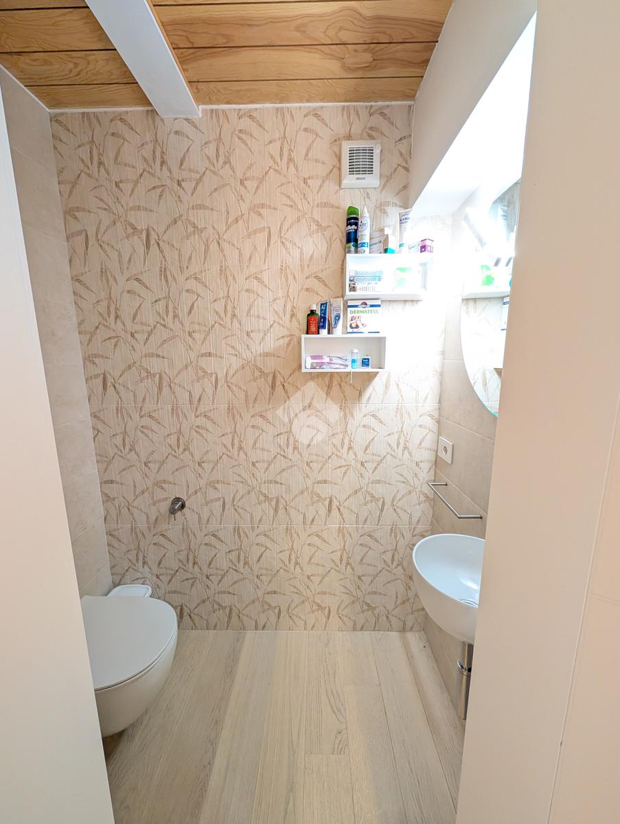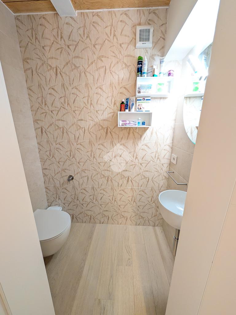 La zona notte comprende due camere da letto matrimoniali di generose dimensioni. Una delle due dispone di un bagno di servizio cieco, dotato di lavabo e moderno wc con funzione igienizzante. Il secondo bagno, completo di tutti i sanitari, è particolarmente luminoso grazie alla presenza di un abbaino che garantisce luce naturale durante tutto il giorno.