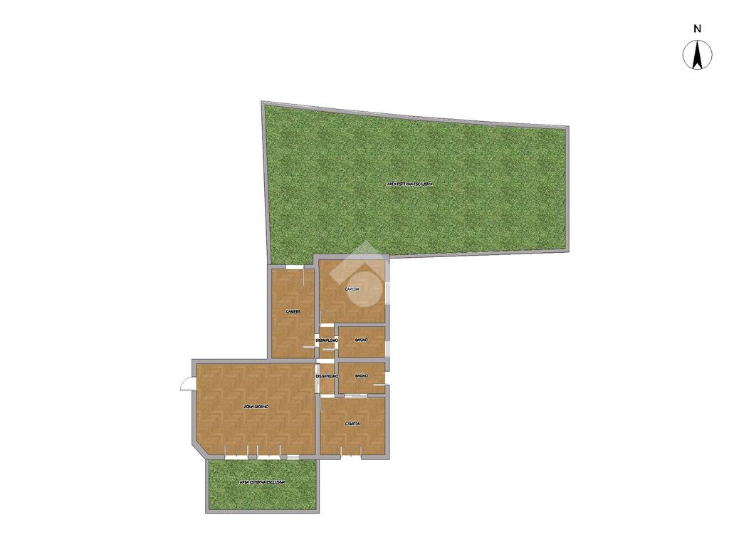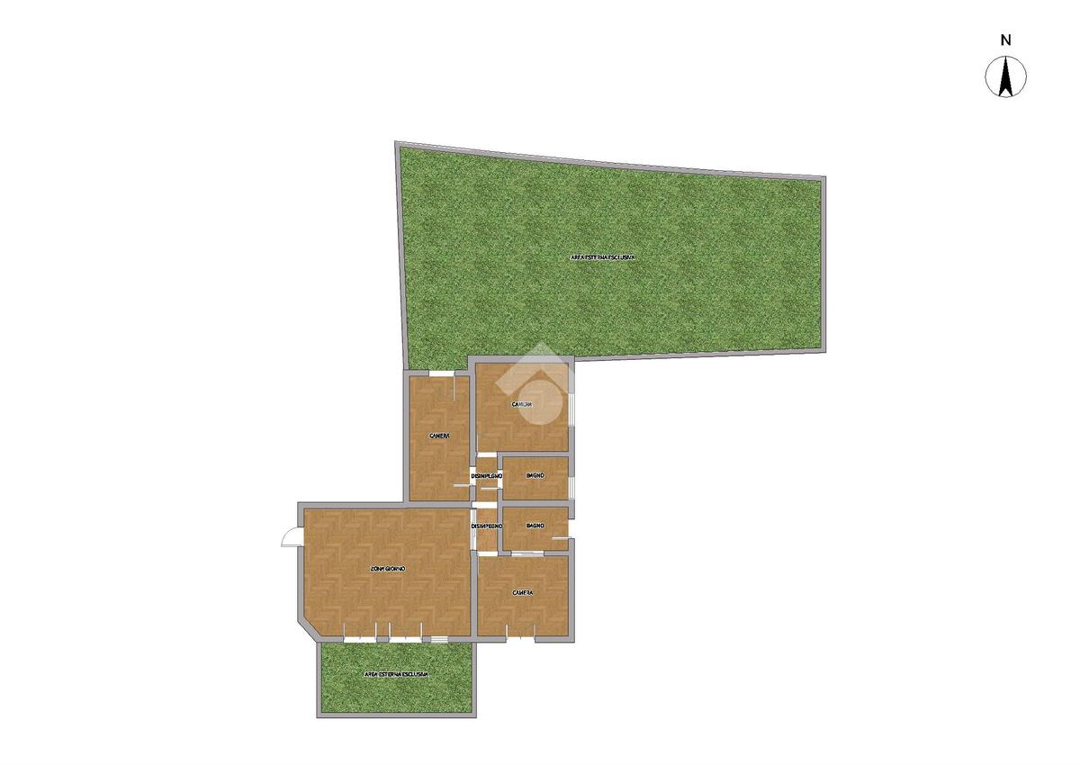 La zona notte comprende tre camere matrimoniali: la camera padronale con bagno privato finestrato, una seconda camera matrimoniale e una terza camera con accesso diretto al giardino di circa 120 mq, ideale per pranzi e cene all’aperto. Un secondo bagno finestrato completa gli ambienti.