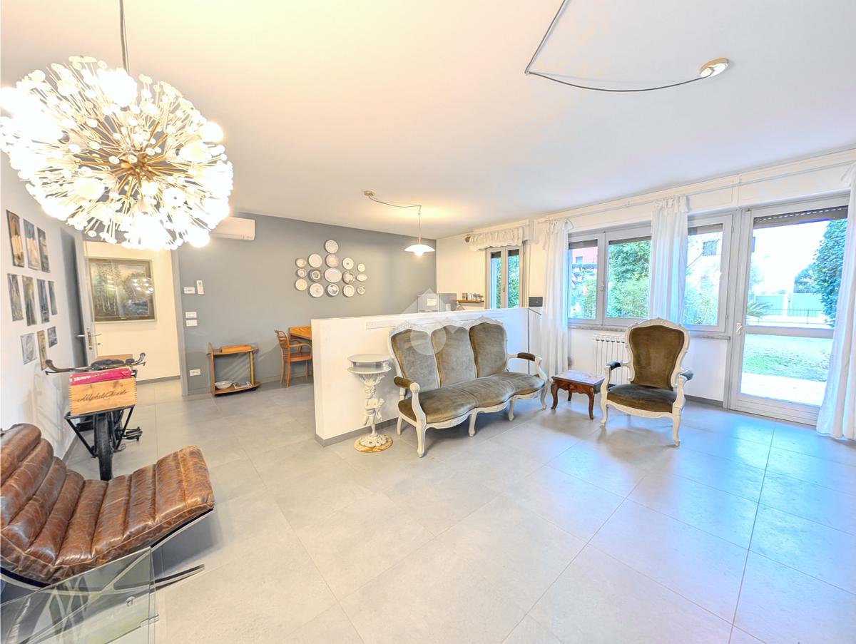 A Lugana di Sirmione, in un elegante contesto residenziale di sole 12 unità, proponiamo in vendita un ampio quadrilocale al piano rialzato con giardino privato, box auto e cantina.