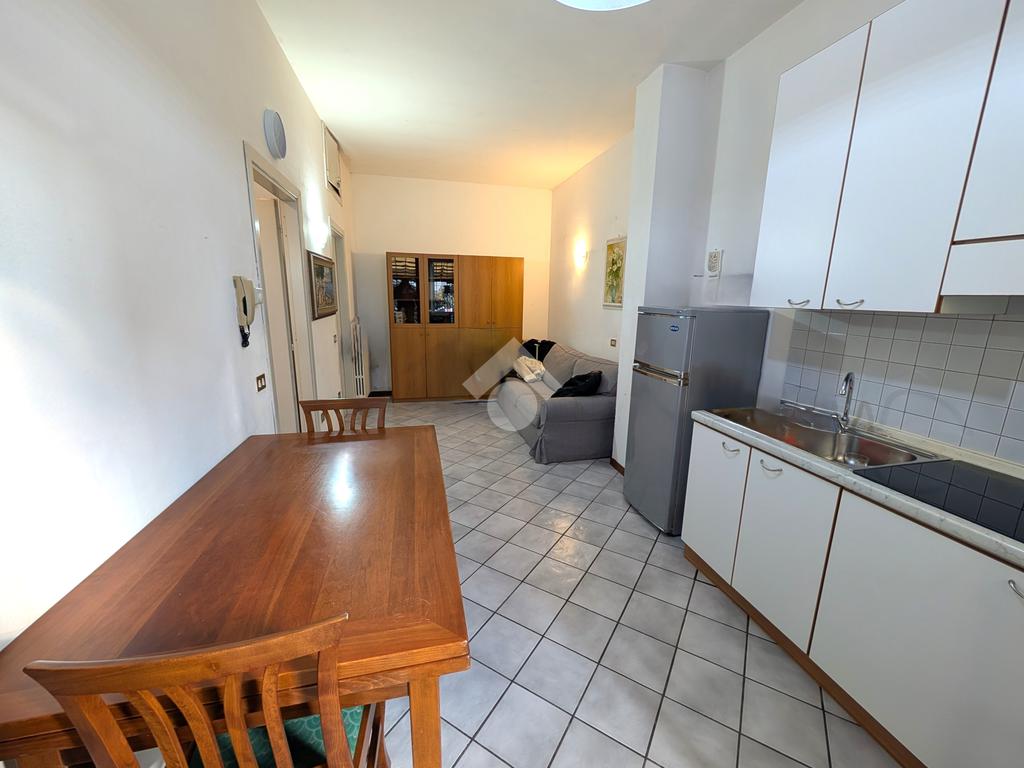All’interno l’appartamento si sviluppa con una zona giorno con angolo cottura a vista e angolo tv, un bagno cieco di buone dimensioni ed una camera matrimoniale.