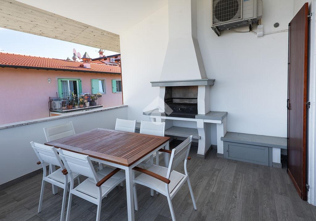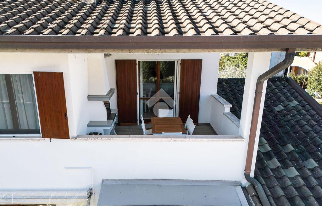 Elemento di particolare valore è l'ampio terrazzo/loggia, vero prolungamento della zona giorno: uno spazio esterno di generose dimensioni, dotato di camino barbecue e piacevoli scorci di vista lago. La metratura e la conformazione lo rendono ideale per pranzi e cene all'aperto, per accogliere ospiti o per creare una zona relax attrezzata, valorizzando concretamente la vivibilità dell'immobile durante gran parte dell'anno.