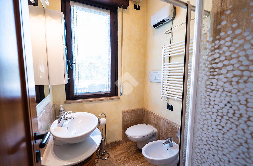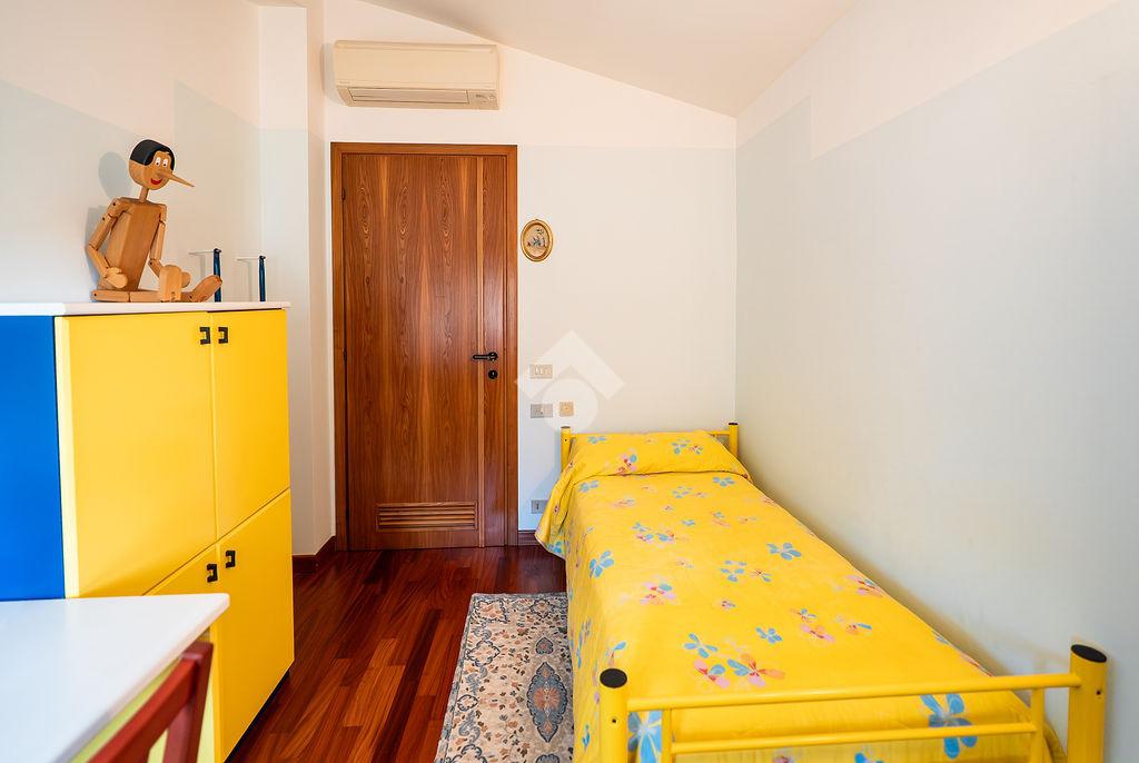 Al primo piano la zona notte è composta da tre camere da letto, di cui una spaziosa matrimoniale dotata di cabina armadio. Ogni camera da letto ha un suo split per raffrescamento degli ambienti. Il piano è servito da un bagno finestrato con vasca, funzionale e ben distribuito.